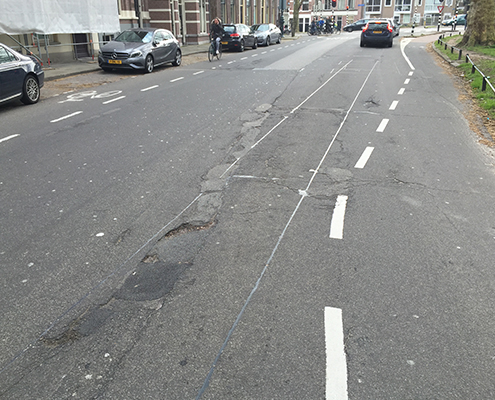 Het wegdek van de Maliebaan en Tolsteeg was in het midden van de baan omhoog geduwd door boomwortels. Over een lengte van maar liefst 3,5 km was het asfalt gescheurd en rafelig. In totaal ging het om een werkoppervlakte van ongeveer 700 m2.
