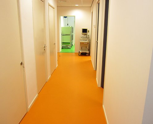 Aanbrengen van een vloercoating vereist onder andere een strakke en compleet egale ondergrond. Om in de praktijken van de Dierendokters een kwalitatief hoogwaardige vloer aan te brengen, zijn de bestaande vloeren geëgaliseerd. Dat was soms beslist een uitdaging. Met name de oude houten vloeren vereisten een speciale aanpak. Om de gietvloer te beschermen tegen onnodig vuil van viervoeters is iedere entree voorzien van een grote schoonloopmat. De vloercoating die Burdie heeft aangebracht, verzekert de Dierendokters van een vloer met een lange levensduur die aan alle wettelijk gestelde eisen voldoet. De gietvloer is uitgevoerd in het gewenste design; het geeft de dierenkliniek een toegankelijke en prettige uitstraling.
